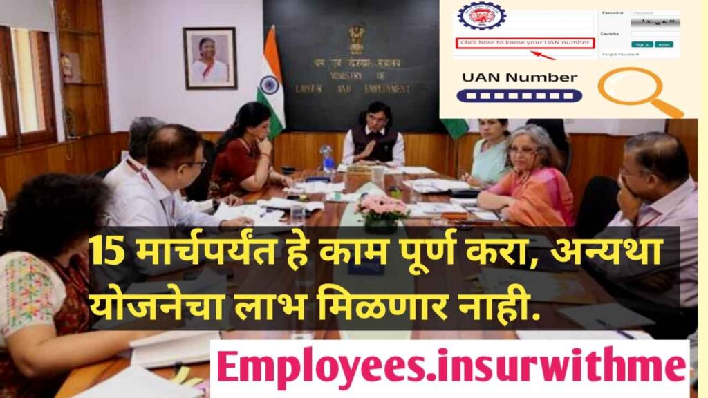 created by khushi 5 March नमस्कार मित्रांनो,employee news update कर्मचाऱ्यांसाठी मोठी बातमी आज आम्ही घेऊन आलो आहोत. जर तुम्ही हे काम नाही केलात तर तुम्हाला या योजनेचा लाभ मिळणार नाही.कर्मचारी भविष्य निर्वाह निधी संघटनेने युनिव्हर्सल अकाउंट नंबर (UAN) सक्रिय करण्यासाठी आणि बँक खाते आधारशी लिंक करण्यासाठी 15 मार्च ही अंतिम तारीख निश्चित केली आहे, जर … Continue reading कर्मचाऱ्यांसाठी मोठी बातमी,15 मार्चपर्यंत हे काम पूर्ण करा, अन्यथा योजनेचा लाभ मिळणार नाही.employee news update